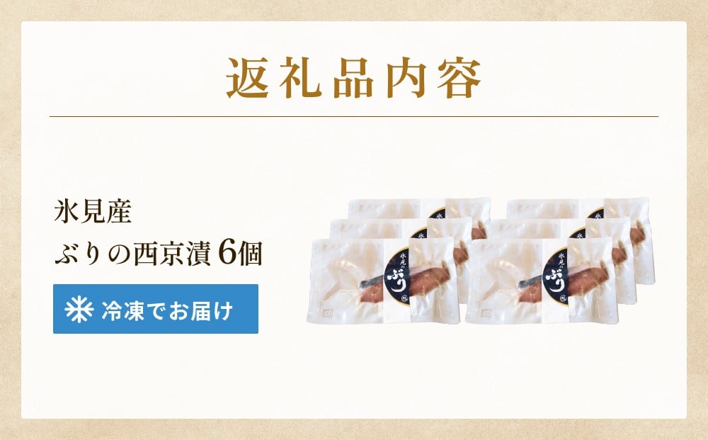 ぶり 西京漬け 6個 富山県 氷見市 鰤 切り身 パック 個包装 簡単調理