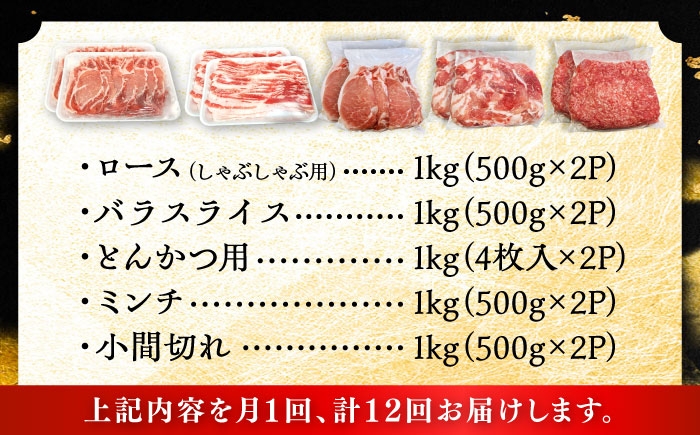 - 【全12回定期便】 瀬戸豚 豚肉 生活応援セット 計5kg / 豚肉 小分け しゃぶしゃぶ セット / 瀬戸市 / 関屋精肉店 [BBBQ218]