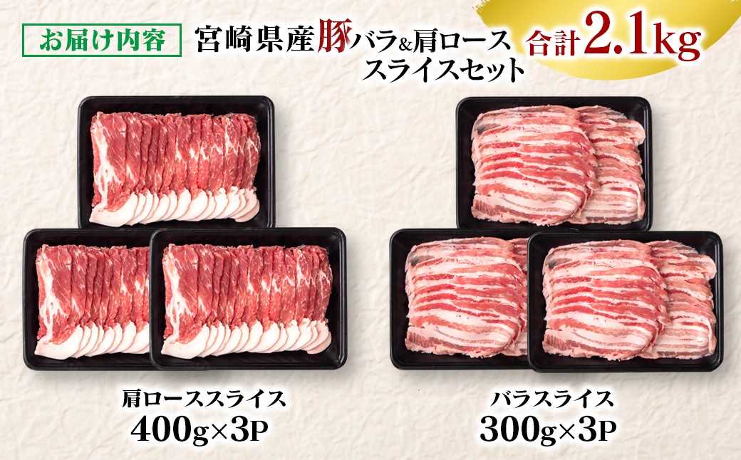 - 【選べる発送月】宮崎県産豚肉 豚バラ&肩ローススライス2.1kgセット しゃぶしゃぶ<1.4-29>豚 豚すき焼き 炒め物