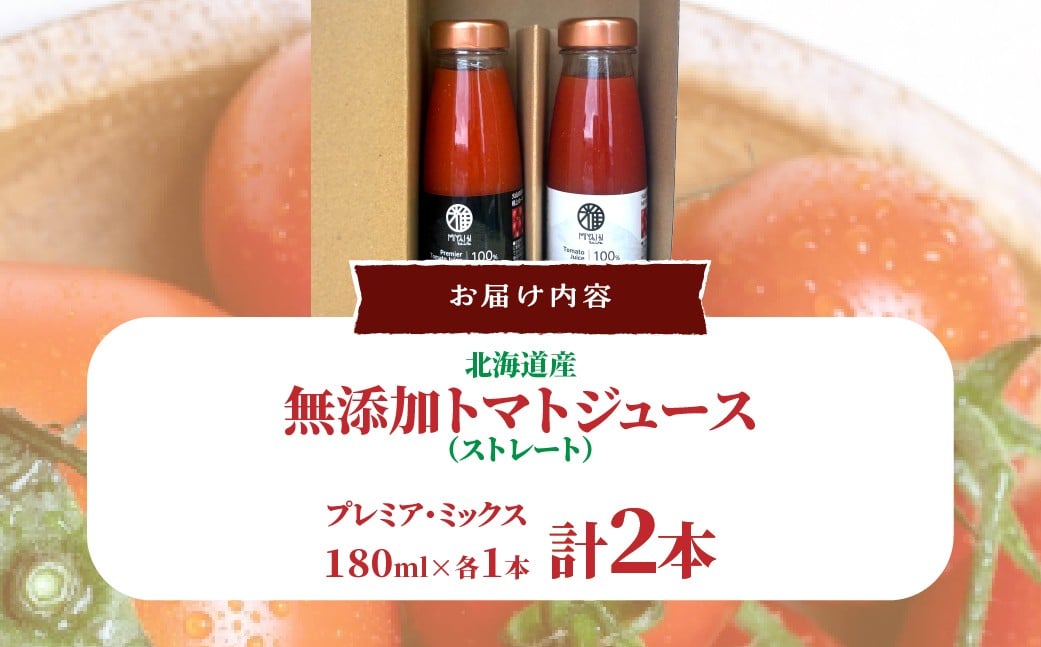 - 無添加トマトジュース(ストレート)180ml×2本【プレミア・ミックス各1本】【ふるさと納税 人気 おすすめ ランキング トマト トマトジュース ストレート 無塩 無添加 効果 血圧 スープ 北海道 壮瞥町 送料無料】 SBTAK003
