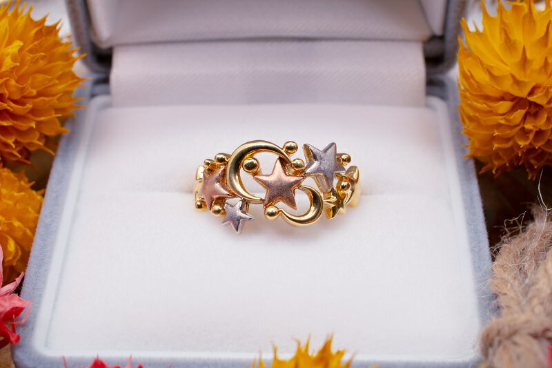 - 【ふるさと納税】< 甲府ジュエリー > リング 指輪 ジュエリー アクセサリー レディース 星 モチーフ K18 イエローゴールド ピンクゴールド プラチナ プラチナ900 Pt900 地金 3種 ジュエリーケース付 保証書付 k182-005