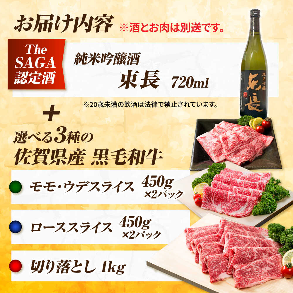 - 【ふるさと納税】【晩酌セット 竹コース】選べる佐賀県産黒毛和牛 & 純米吟醸東長 720ml / 佐賀産和牛 白石 [IZZ036]
