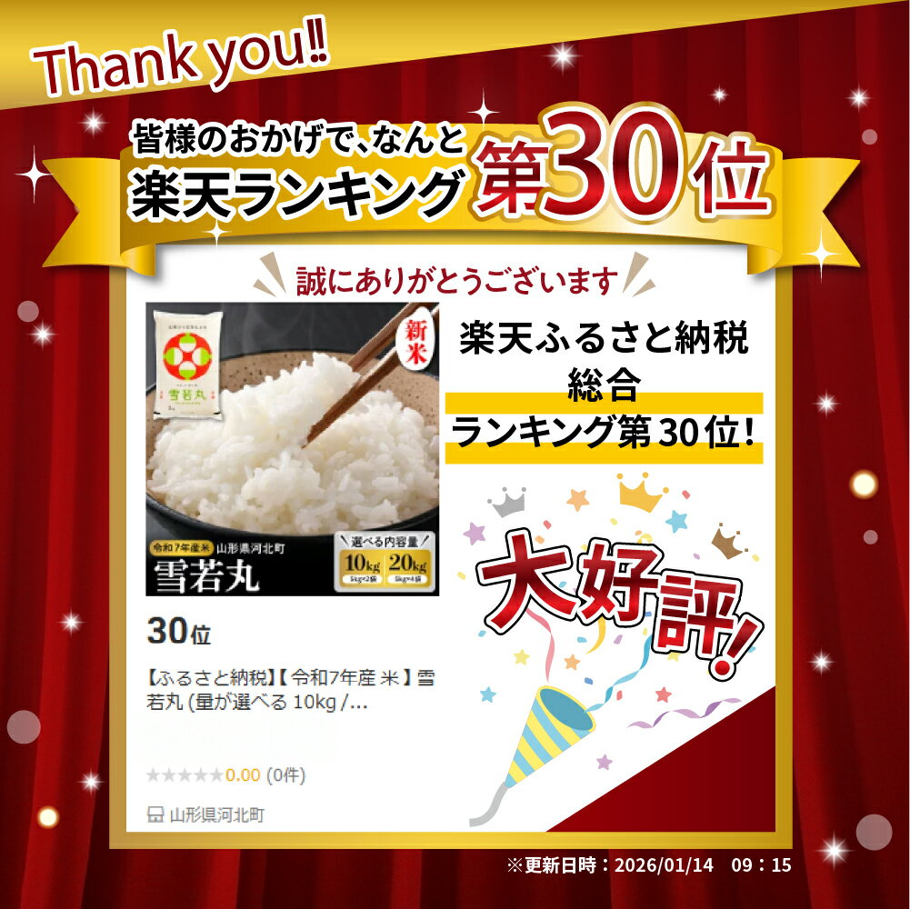 - 【ふるさと納税】【 令和7年産 米 】 雪若丸 (量が選べる 10kg / 20kg) 先行予約 山形県産 | 発送時期が選べる 2025年 精米 白米 こめ ごはん ご飯 お取り寄せ 10キロ 20キロ 産地直送 国産米 送料無料 山形県 河北町【米COMEかほく協同組合】