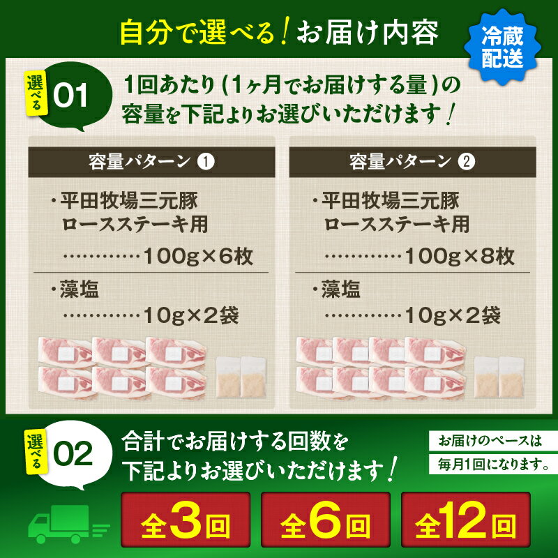 - 【ふるさと納税】<選べる容量と回数> 3回 ~ 12回 毎月 定期便 日本の米育ち平田牧場 三元豚ロースステーキ 6枚 or 8枚 肉 豚 豚肉 三元豚 ロース ステーキ 冷凍 便利 パック 定期 平田牧場 北海道 苫小牧市 おすすめ ランキング プレゼント ギフト
