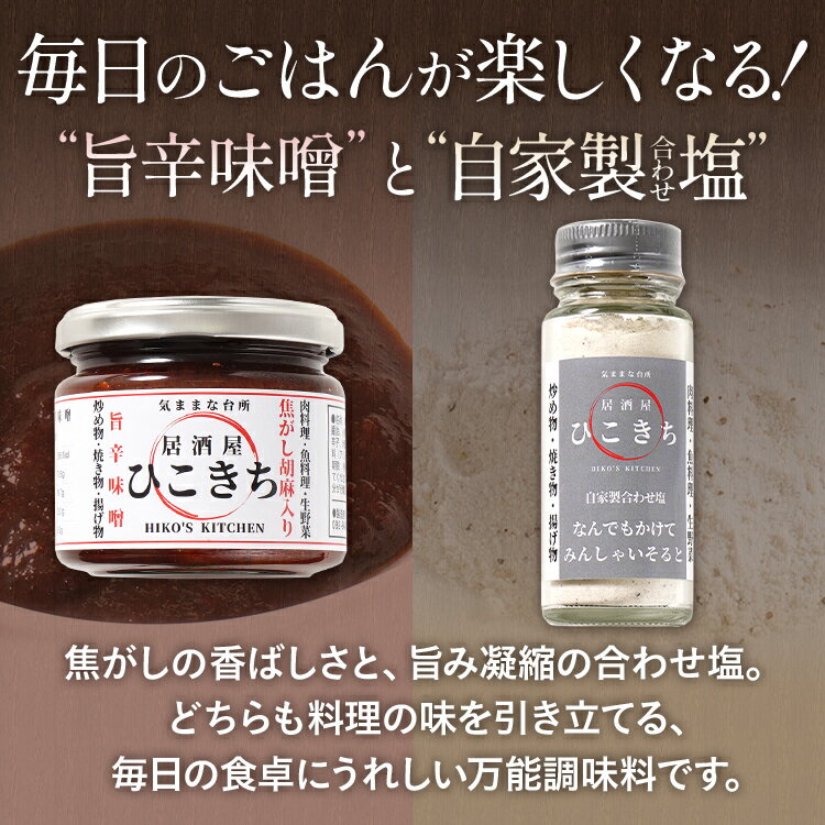【ふるさと納税】焦がし胡麻入り旨辛味噌と自家製合わせ塩セット 万能調味料 ソルト 旨味 味付き塩 旨辛 味噌 胡麻 辛味噌 辛いもの好き 唐辛子 調味料 料理 時短 炒め物 焼き物 揚げ物 福岡県 福岡 九州 グルメ お取り寄せ