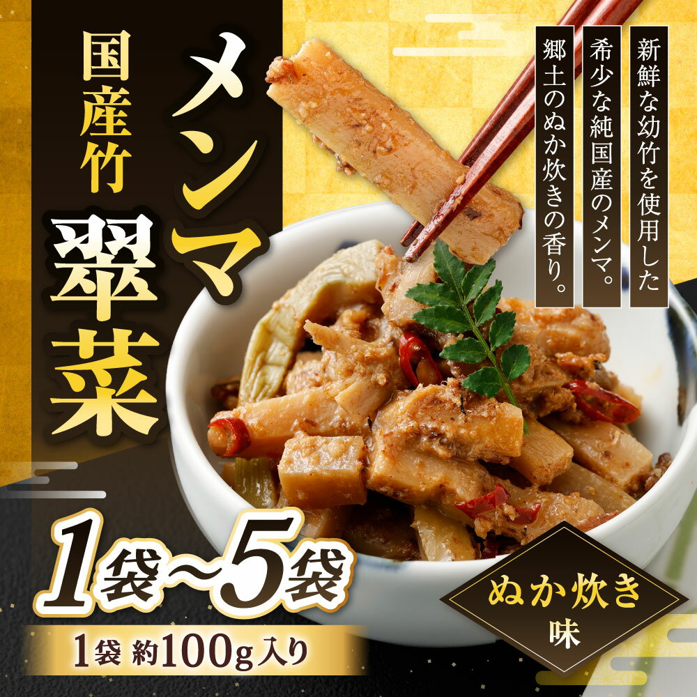 【ふるさと納税】国産竹メンマ「翠菜」ぬか炊き味 選べる 1袋 / 3袋 / 5袋 1袋約100g入り メンマ 合馬たけのこ 筍 タケノコ 麺麻 味付き ぬか炊き ぬかだき 国産 幼竹 希少 純国産 ぬか 福岡県北九州市