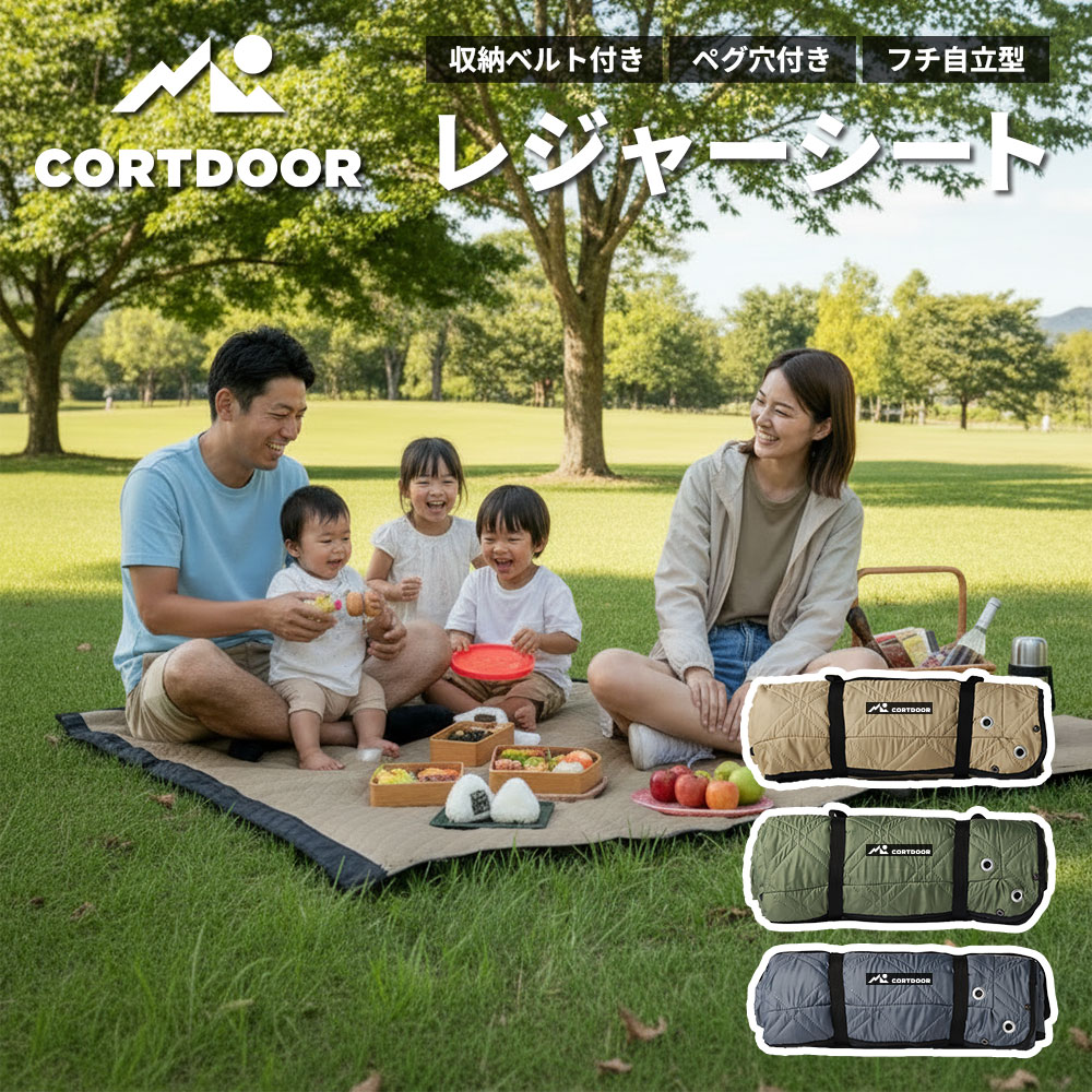 - 【ふるさと納税】<選べるカラー>【CORTDOOR】 レジャーシート サンドベージュ / フォレストグリーン / チャコールグレー 大判 ファミリーサイズ(大人5~6名) 200cm フチ自立型 ペグ穴付き 折りたたみ コンパクト ピクニックシート キャンプ用品 アウトドア BBQ 送料無料