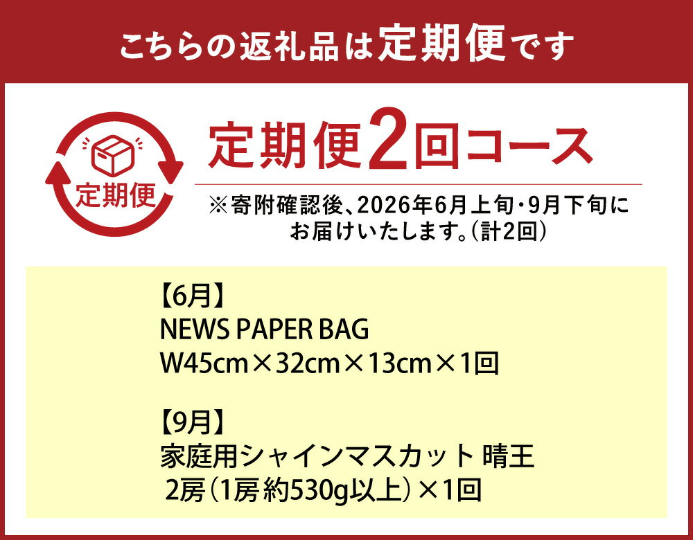 【ふるさと納税】【年2回定期便】NEWS PAPER BAG(Hickory)+家庭用シャインマスカット晴王 2房(1房約530g以上) セット ニュースペーパーバッグ 大型ショルダーバッグ 鞄 カバン かばん シャインマスカット フルーツ くだもの 【2026年6月上旬~9月下旬まで発送予定】