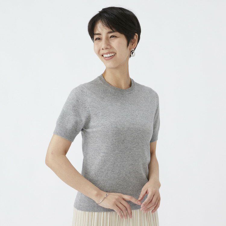 - 【ふるさと納税】【選べるサイズ】日本製 カシミヤ100% レディース クルーネック半袖 ライトグレー