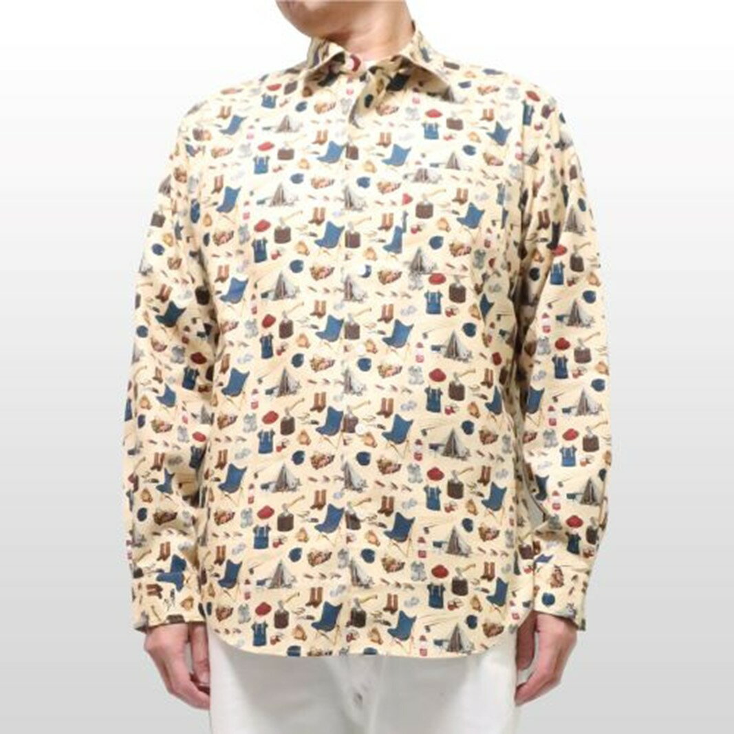 - 【ふるさと納税】CLOFT 綿100% 長袖プリントシャツ ”アウトドア・キャンプ” ツイル(C/#32 ベージュ) L 新宿 シャツ ベージュ おしゃれ 洋服 アート 上質 逸品 プレゼント 贈り物 柄シャツ 総柄 長袖 アウトドア 洋服 0139-013-S07-4