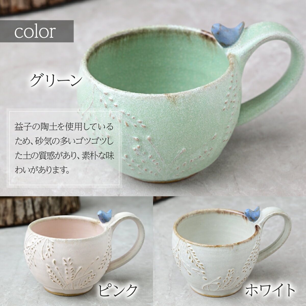 - 【ふるさと納税】工房とめ 小鳥のマグカップ 1個 選べる ピンク ホワイト グリーン | 食器 マグカップ カップ 器 うつわ 益子焼 陶芸 陶器 栃木県 茂木町