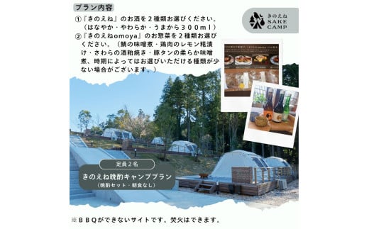 - きのえねSAKE CAMP 晩酌プラン(一泊二日 定員2名)千葉県 酒々井町 キャンプ キャンプ場 グランピング