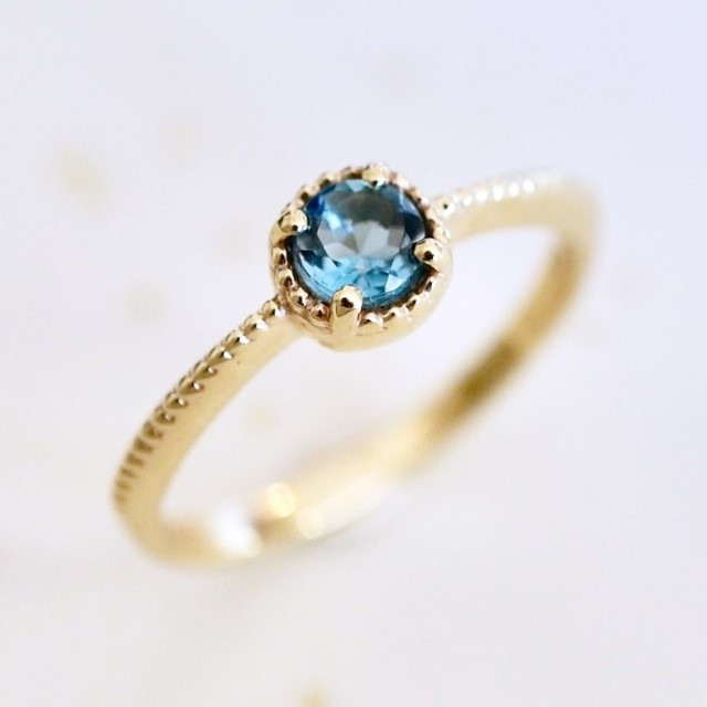 < 甲府ジュエリー > 【ジュエリー】K10 イエローゴールド ロンドンブルートパーズ 一粒石 シンプル リング 指輪 保証書付 NR-1838 【サイズ:7号~17号 ※0.5号刻み】