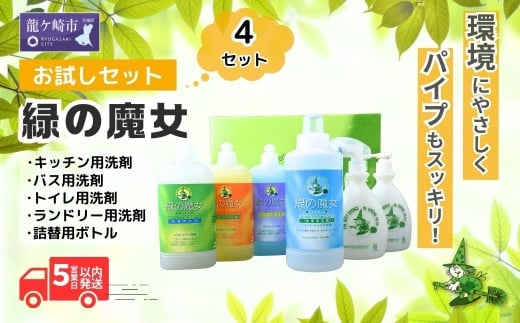 緑の魔女ランドリー+キッチン+バス+トイレお試しセット MG-33×4セット | 洗剤 液体 液体洗剤 環境配慮 エコ やさしい 洗濯 洗濯洗剤 トイレ トイレ用洗剤 バス バス用洗剤 トイレ トイレ用洗剤 衣類 衣類用洗剤 汚れ 油汚れ 皮脂 皮脂汚れ パイプ パイプクリーナー 植物由来 除菌 防臭 エコ お中元 お歳暮 ギフト 大掃除 洗浄力 セット 茨城県 龍ケ崎市