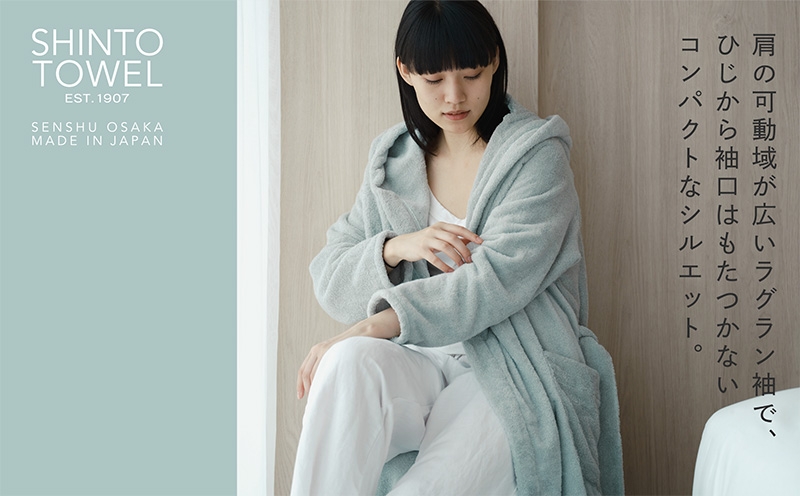 SHINTO TOWEL「ユキネ・バスローブ」Mサイズ(セージ)【オーガニックコットン100% 国産 吸水 普段使い シンプル 日用品 家族 ファミリー】