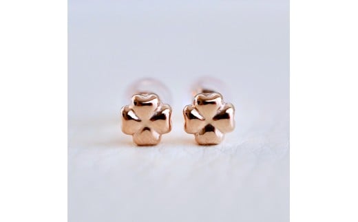 - K18PG(18金) ローズゴールド 地金 クローバー ピアス シンプル 幸運 希望 幸福 愛情 健康 保証書付 KO-0063 242-021-c