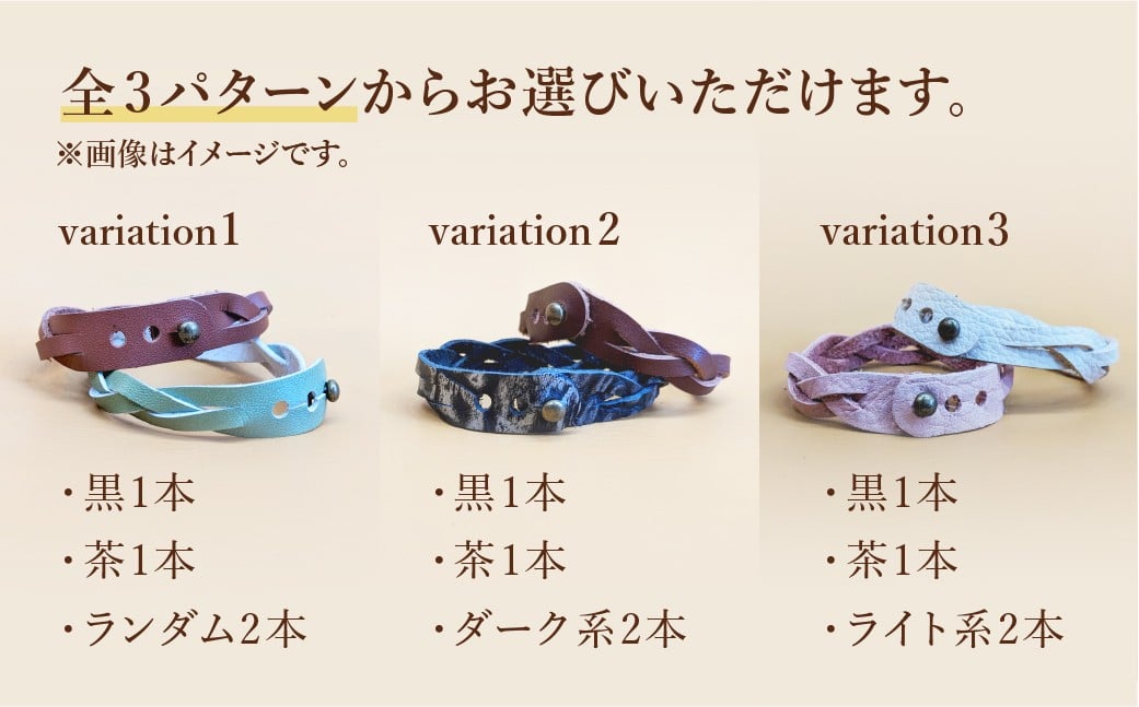 - 【選べるカラートーン】自分で編む革ブレスレット / ランダム・ダークカラー・ライトカラー 4本セット | 革 革小物 革ブレス 手作り プレゼント 贈り物 誕生日 経験 手作り体験 ブレスレット 革ブレスレット ランダム セット キット お洒落 家族 友人 友達 牛革 埼玉県 上尾市