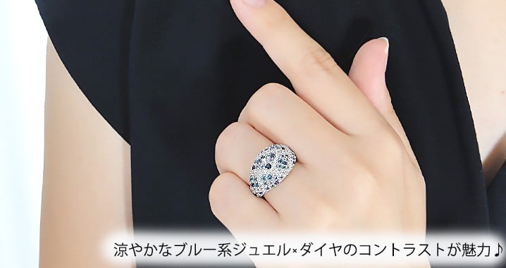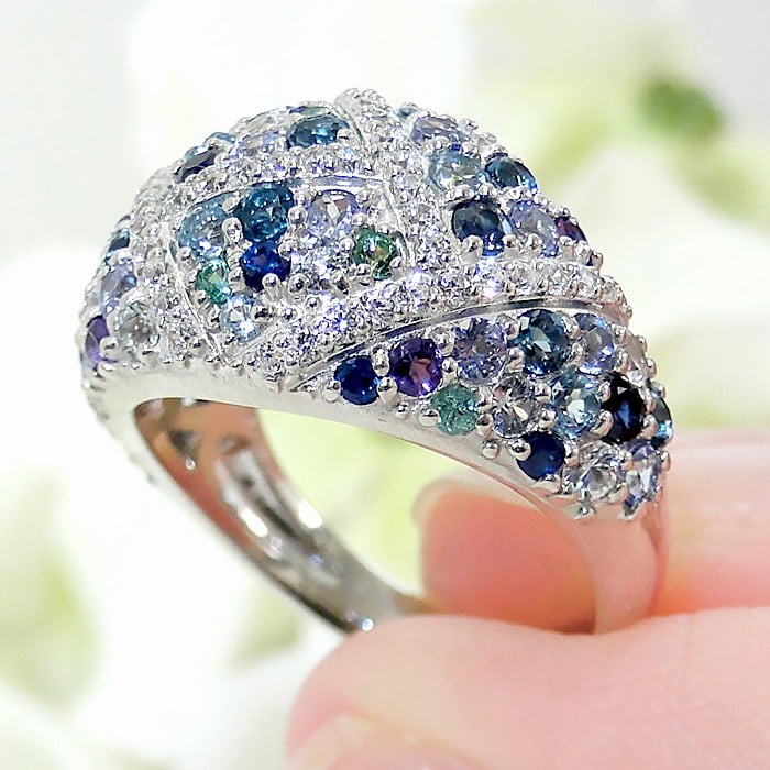 - 指輪 プラチナ リング PT900 ダイヤモンド 0.3ct パヴェ マルチカラー 青系 レディース ゴージャス ボリューム 幅広 18金 贅沢 Pave ステンドグラス ジュエリー 【f295-b-pt】 ALPAZ189