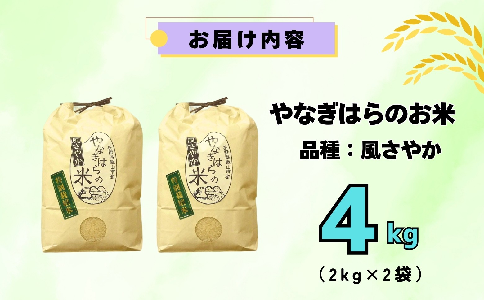 - 【令和7年産】特別栽培米「やなぎはらの米 風さやか」4㎏ 《2025年月10月中旬〜発送》 (7-69) お米 コメ 白米 ご飯 長野県 信州 飯山市 令和7年 かぜさやか 産地直送 農家直送