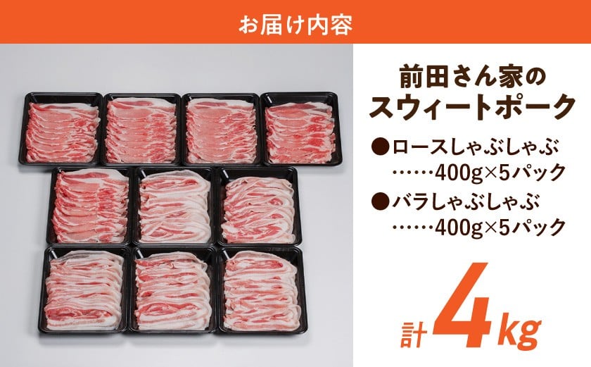 「前田さん家のスウィートポーク」ロース&バラしゃぶしゃぶ4kgセット_AC-8907_(都城市) 豚肉セット 豚ロースしゃぶしゃぶ 豚バラしゃぶしゃぶ 400g×5パック 計4キロ ブランドポーク ロース バラ しゃぶしゃぶ 肉 冷凍