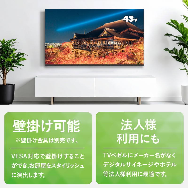 - 【最短3日発送】 チューナーレステレビ 43型 ダイコーアペックス 液晶モニター (AP43APXB) セカンドテレビ 43V 子ども用 寝室用 フルハイビジョン 壁掛け可能 VESA対応 家電 電化製品 43インチ 法人用にもおすすめ ホテル 学校 病院 デジタルサイネージ ダイコーアペックス 送料無料 山梨県上野原市
