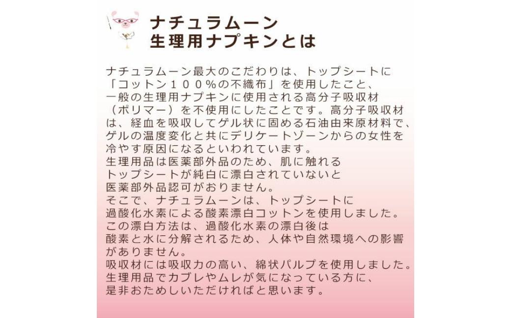 - オーガニックコットン 生理用ナプキン ナチュラムーン生理用品 普通の日用 羽なし 24個入×4個 [ まとめ買い サニタリー用品 女性用 無添加 低刺激 肌にやさしい 健康 安心 安全 人気 おすすめ お試しセット 香川県 三豊市 ]