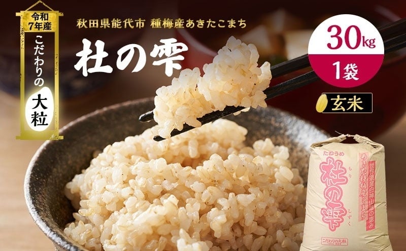 - 令和7年産 玄米 秋田 あきたこまち 杜の雫 30kg 1袋 秋田県産 米 お米 こだわりの大粒 種梅産 ご飯 ブランド米 大粒 おにぎり 産地直送 送料無料 おこめ ごはん 秋田県