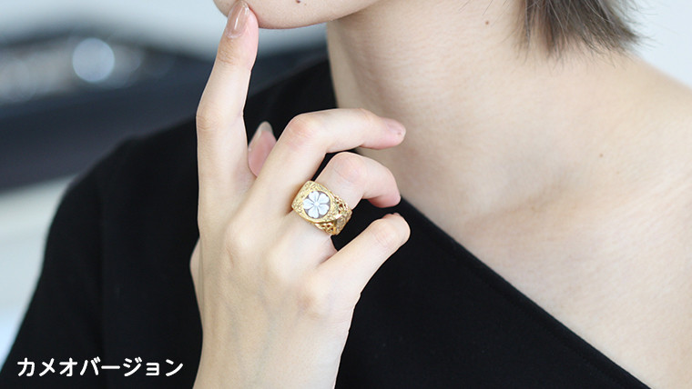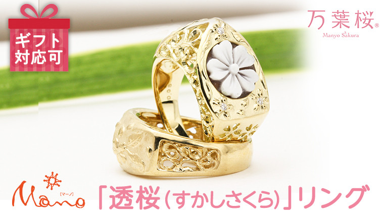 万葉桜より「透桜(すかしさくら)」 リング K18 シェル カメオ 透かし彫 伝統工芸 金 指輪 ギフト 記念 贈答用 贈り物 リング アクセサリー ジュエリー ジュエリーマーノ 桜川市 [AH066sa]