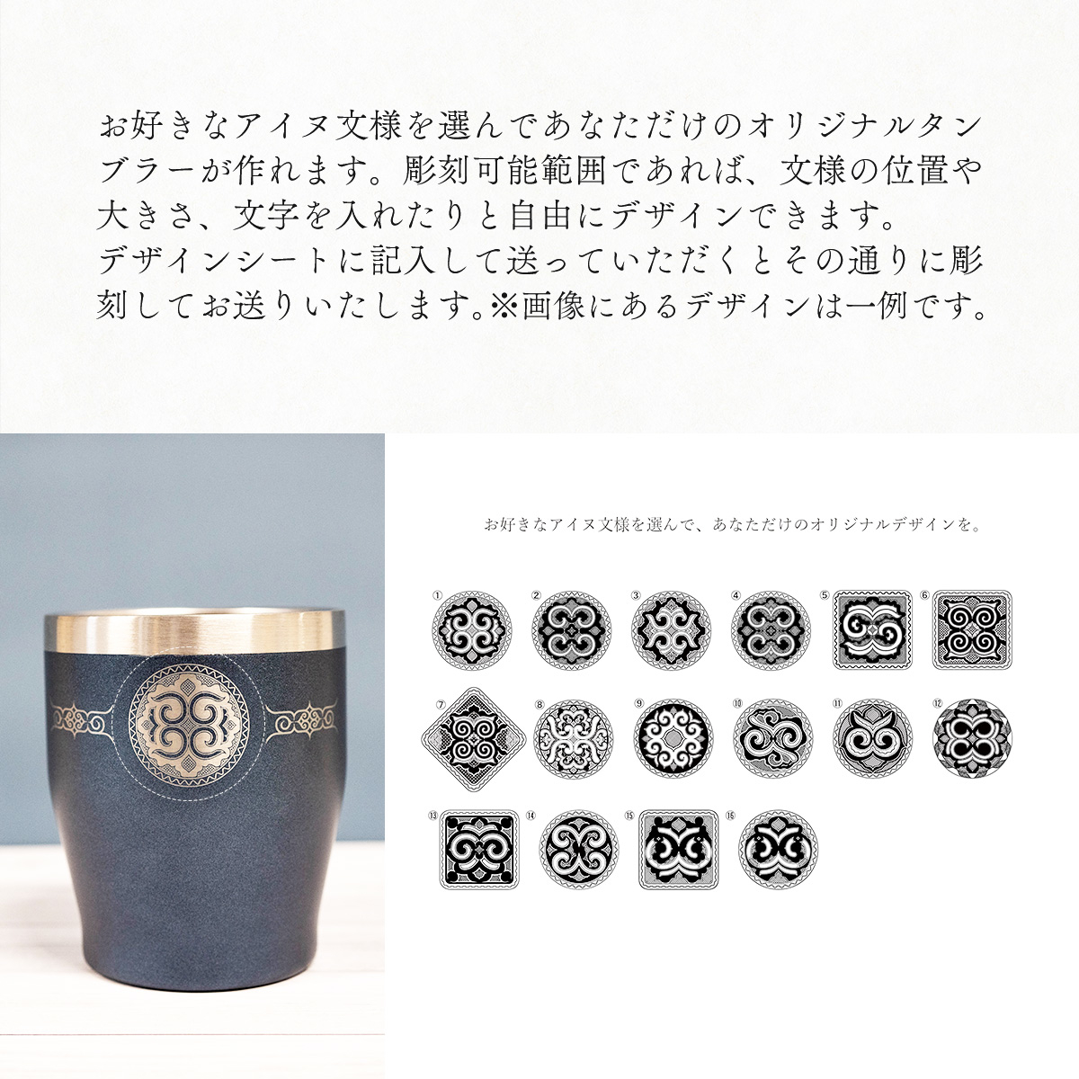 - 【北海道平取町アイヌ工芸伝承館限定】アイヌ文様入りオリジナルタンブラー BRTA010-1