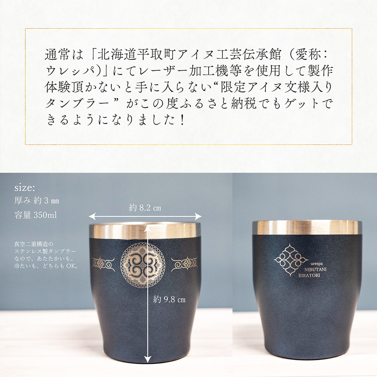 【北海道平取町アイヌ工芸伝承館限定】アイヌ文様入りオリジナルタンブラー BRTA010-1