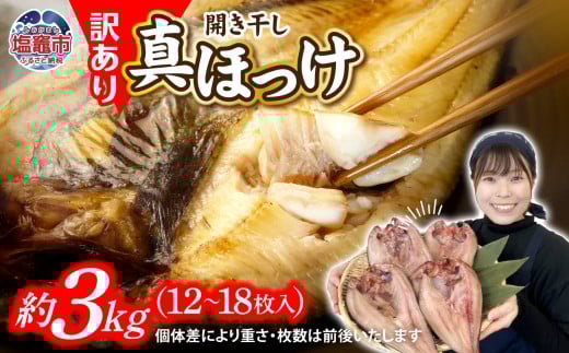 - 2025年末大感謝祭 [特別な寄附額] 《2026年3月発送》訳あり 北海道産 真 ホッケ 開き干し 約 3kg 12~18枚入り 冷凍 【 訳アリ 不揃い 規格外 国産 ほっけ 真ほっけ 熟成 ひもの 干物 宮城県 塩竈市 間宮商店 】r6-mm00011-3kg-202603