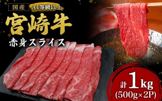 【A4等級以上】宮崎牛赤身スライス 1kg(国産 牛 宮崎牛 牛肉 赤身 焼きしゃぶ すき焼き 宮崎県 小林市)