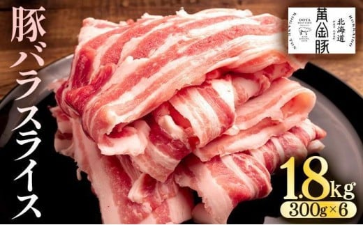 <6月発送>北海道 黄金豚 豚バラ スライス 300g 6パック 計1.8kg 国産 三元豚 ブランド豚 豚肉 バラ肉 冷凍 お肉 小分け 薄切り 肉料理 鍋料理 炒め物 大矢 オオヤミート 送料無料 伊達市 55250193-2606