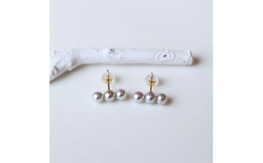 - パール優美 真珠 ピアス 4mm ~ 5mm K18 ゴールド アクセサリー パール 三重県 伊勢志摩 志摩市 母の日 ホワイトデー クリスマス プレゼント ギフト 冠婚葬祭 入学式 卒業式 成人式 結婚式 3粒 / 志摩産アコヤ真珠 4-5ミリ 天然色 ナチュラルブルー 数粒ラインピアス ( K18YG )