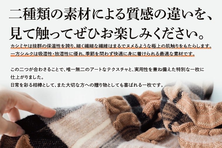 【数量限定】【アートな冬の必需品】手織りカシミヤ×シルクのマフラー【マフラー おしゃれ プレゼント ギフト 冬 手織り カシミヤ シルク 水戸市 茨城県】(NT-1)