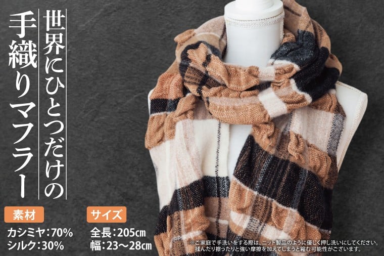 - 【数量限定】【アートな冬の必需品】手織りカシミヤ×シルクのマフラー【マフラー おしゃれ プレゼント ギフト 冬 手織り カシミヤ シルク 水戸市 茨城県】(NT-1)