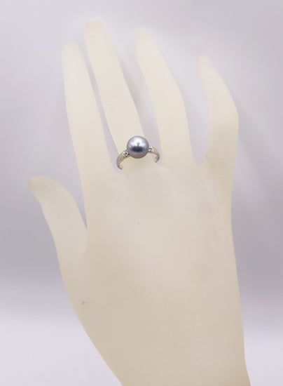 1950 Pt900 あこや本真珠8.8㎜ ダイヤモンド0.04ctリング