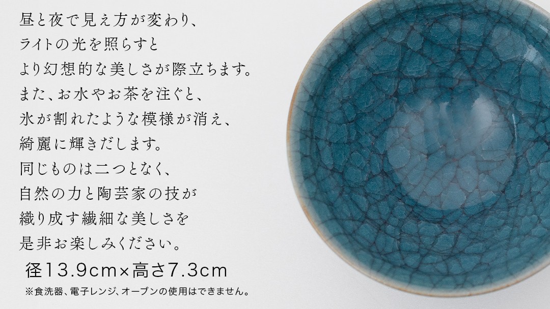 - 【氷裂貫入青瓷】抹茶茶碗 (小野寺裕司 作) 径13.9cm×高さ7.3cm | 茶碗 湯飲み 夫婦湯飲み 陶器 陶芸 お茶 食器