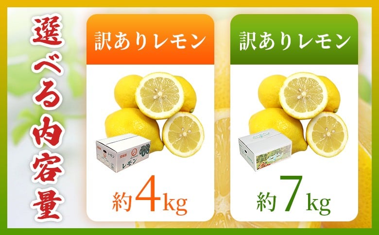 <愛媛県西予市産 訳あり レモン 約4kg/約7kg> 選べる ワケアリ 家庭用 ご自宅用 れもん 檸檬 柑橘 果物 フルーツ 食べて応援 国産 不揃い 愛媛県産 宇都宮物産【常温】『2025年12月中旬~2026年2月末迄に順次出荷予定』