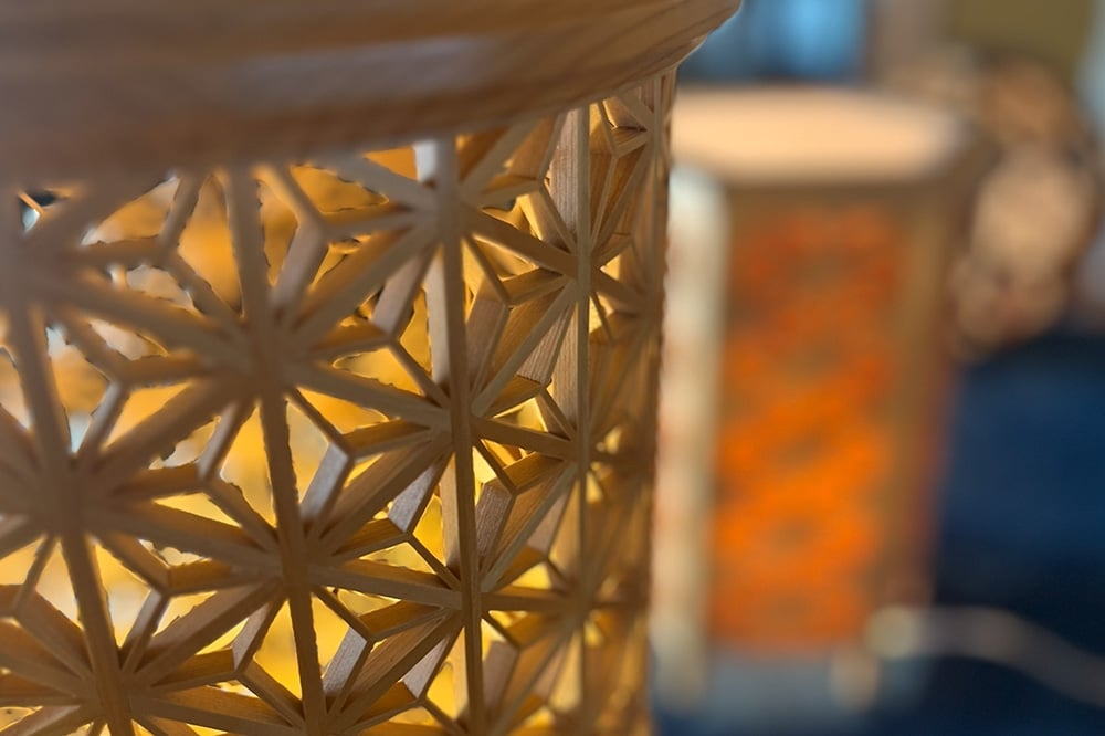 - 《チョイス限定》津軽傳統組子 行灯【麻の葉 筒型】1個
