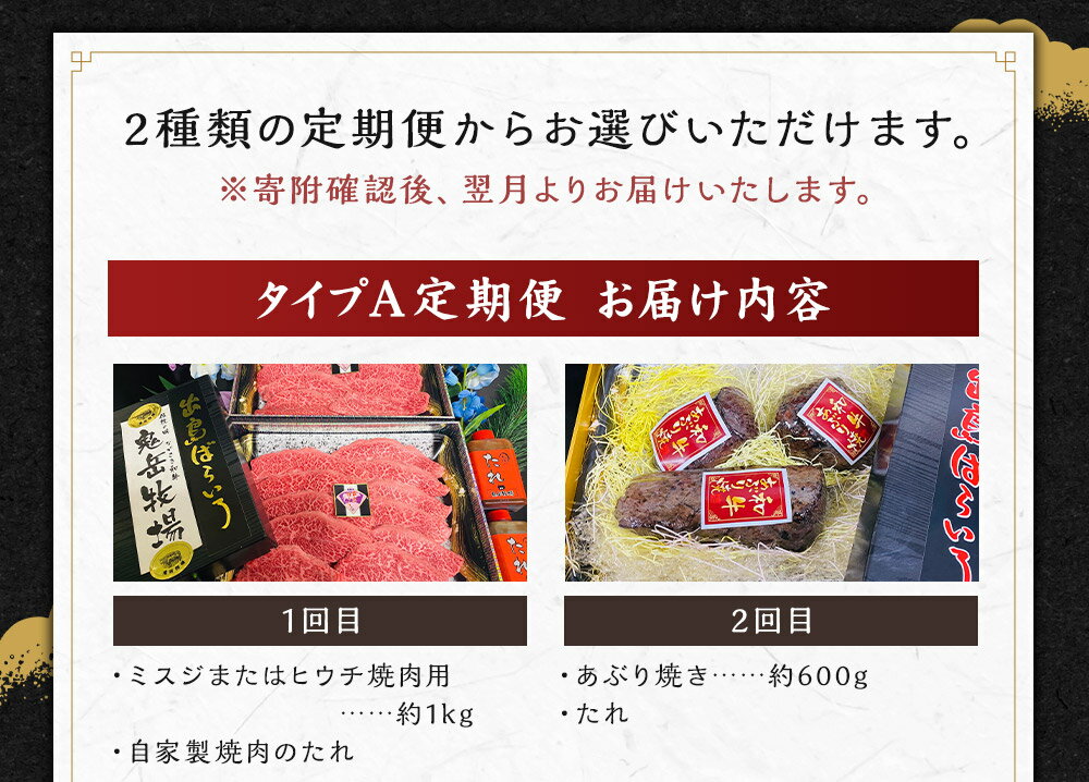 - 【ふるさと納税】【全6回定期便】出島ばらいろ 選べる定期便 ( タイプA / タイプB ) | 焼肉用 あぶり焼き すき焼き用 サーロイン ステーキ しゃぶしゃぶ用 お肉 牛肉 和牛 国産牛 長崎 国産 九州 冷凍 長崎県 長崎市 送料無料