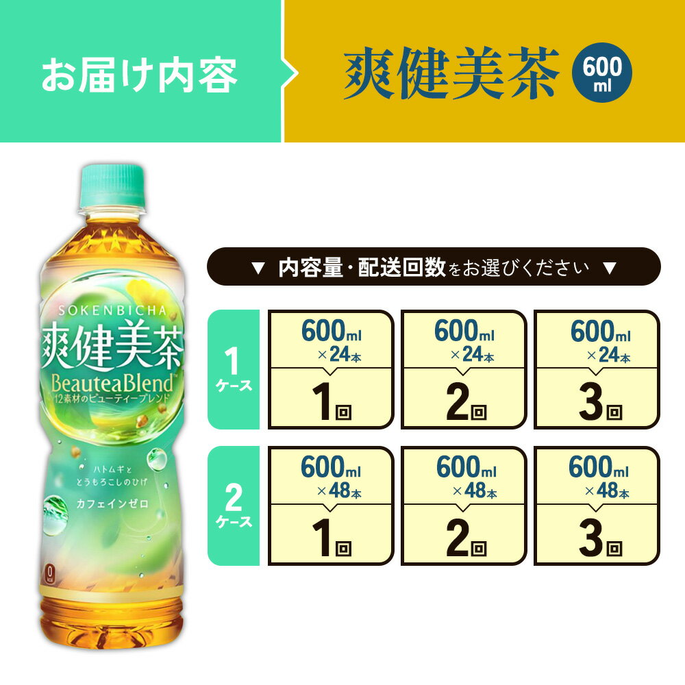 - 【ふるさと納税】【本数/発送回数 選べる】爽健美茶 600ml PET【コカ・コーラ】ペットボトル 1ケース(24本)2ケース(48本) 定期便 2回(48本 96本)3回(72本 144本) セット お茶 カフェインゼロ ノンカフェイン ハトムギ ブレンド茶 飲料 ドリンク 500ml + 100ml 送料無料