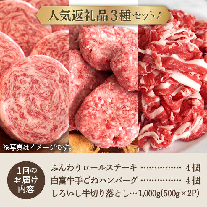 【ふるさと納税】【牧場直送】【12回定期便】人気返礼品詰め合わせ!牛肉100%ふんわりロールステーキ 4個&白富牛手ごねハンバーグ 4個&しろいし牛 切り落とし 1000g【佐賀セントラル牧場】切落し スライス 牛肉 肉 お肉 佐賀県 白石町 白石 [IAH187]