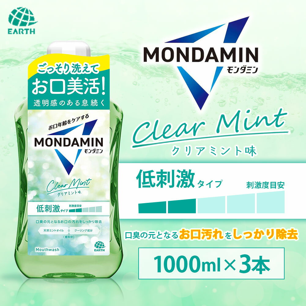 - 【ふるさと納税】モンダミン クリアミント 1000mL 3本 計3000ml 【2026年2月下旬より順次発送予定】 / 洗口液 マウスウォッシュ 口腔ケア 口内ケア オーラルケア アース製薬 モンダミン 口臭 浄化 ミント 殺菌 歯肉炎 むし歯 予防 兵庫県 赤穂市 常温 送料無料