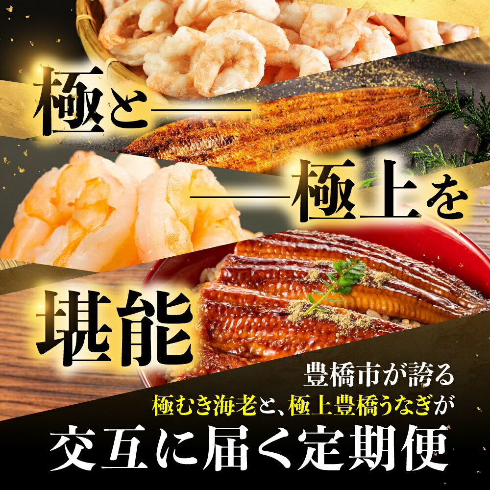 - 【ふるさと納税】超高評価 海老 & うなぎ 定期便 選べる 2回 4回 6回 12回 半年 一年 大粒 バラ凍結 海鮮 えび 訳あり 鰻 むきえび 大容量 2尾 1.7kg 簡易包装 海鮮 冷凍 最高級 長蒲焼 特大サイズ 楽天限定 土用丑の日 丑の日 簡単調理 惣菜 大容量 豊橋市
