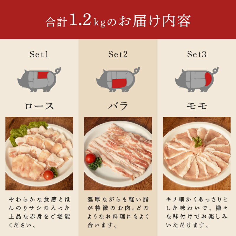 【ふるさと納税】 しゃぶしゃぶ セット 国産 豚肉 ロース バラ モモ 約 1.2kg 小分け 真空パック 200g×6パック 送料無料 冷凍 すき焼き 鍋 しゃぶしゃぶ 焼肉 鉄板焼 ぶた にく ポーク 豚バラ肉 豚ロース肉 豚モモ肉 産地直送 家庭用 千葉県 旭市 しばちゃんの台所