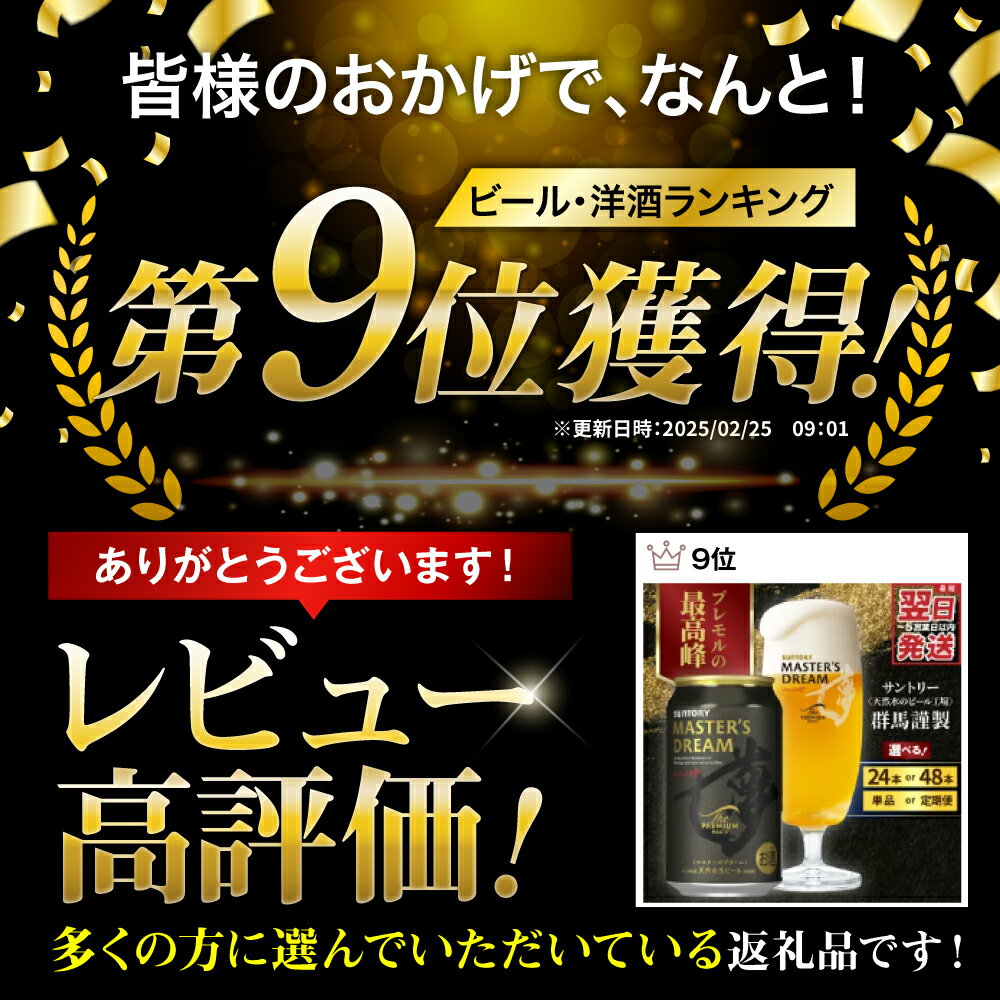 - 【ふるさと納税】高評価 ビール ザ・プレミアムモルツ マスターズドリーム 350ml (選べる 1箱 2箱 / 単品 定期便 )24本 48本 セット プレモル 送料無料 お酒 生ビール ギフト 贈答 お取り寄せ プレゼント 晩酌 アウトドア 贅沢 群馬県 千代田町 最短翌日出荷