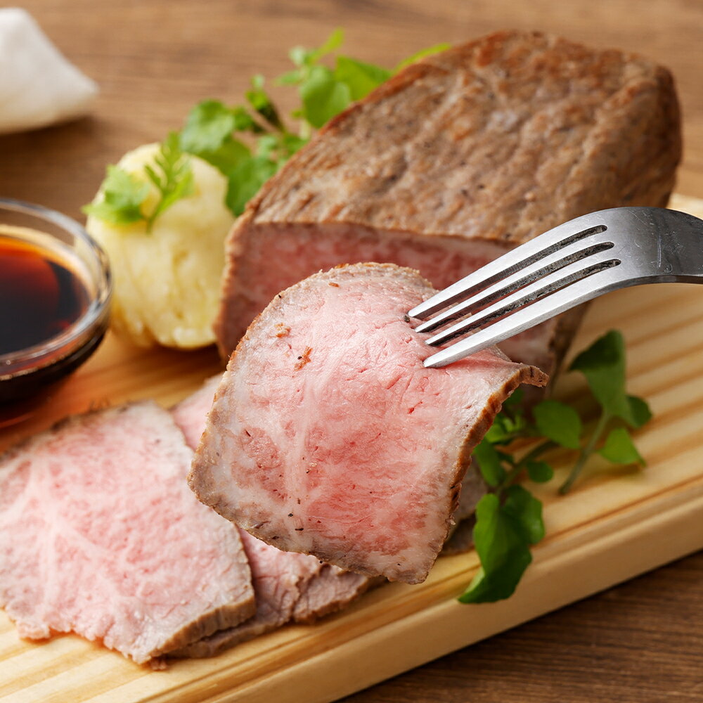 - 【ふるさと納税】<選べる内容量>【極上品質】長崎和牛 A5等級 出島ばらいろ ローストビーフ 計約400g(約200g×2) / 計約1kg(約200g×5) 自家製ソース付き ブランド和牛 牛肉 お肉 モモ肉 もも肉 惣菜 おかず 冷凍 長崎県産 国産 九州 長崎県 時津町 送料無料