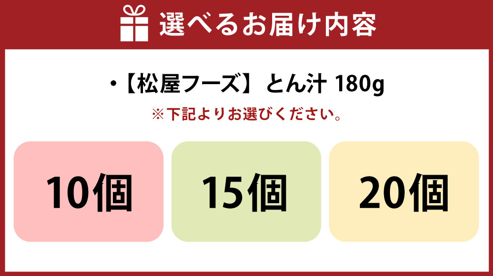 - 【ふるさと納税】【松屋フーズ】とん汁 180g×10個/15個/20個 豚 豚肉 肉 汁 冷凍 ご飯 ごはん おかず 夜食 非常食 備蓄 夕食 食事 180g 10個 15個 20個 電子レンジ 料理 調理 時短 便利 簡単 惣菜 東京都 武蔵野市 <選べる内容量> 送料無料