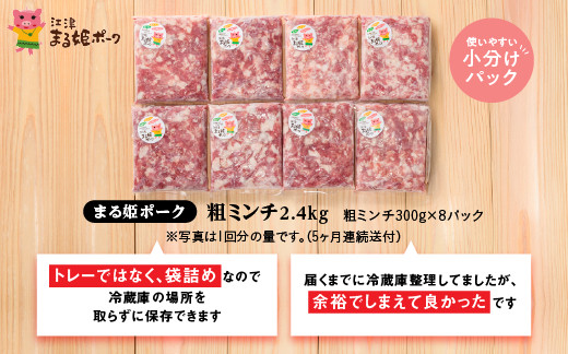 【 5カ月 定期便 】 まる姫ポーク 粗ミンチ 2.4kg (300g×8パック) ×5回 (計12kg) 【AK-35】 国産 豚肉 挽肉 ミンチ 便利 多用途 小分け パック 定期 5回配送